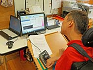 身体に障害のある利用者がパソコンを使ってデータ作成を行い、さまざまな印刷物を作っています。